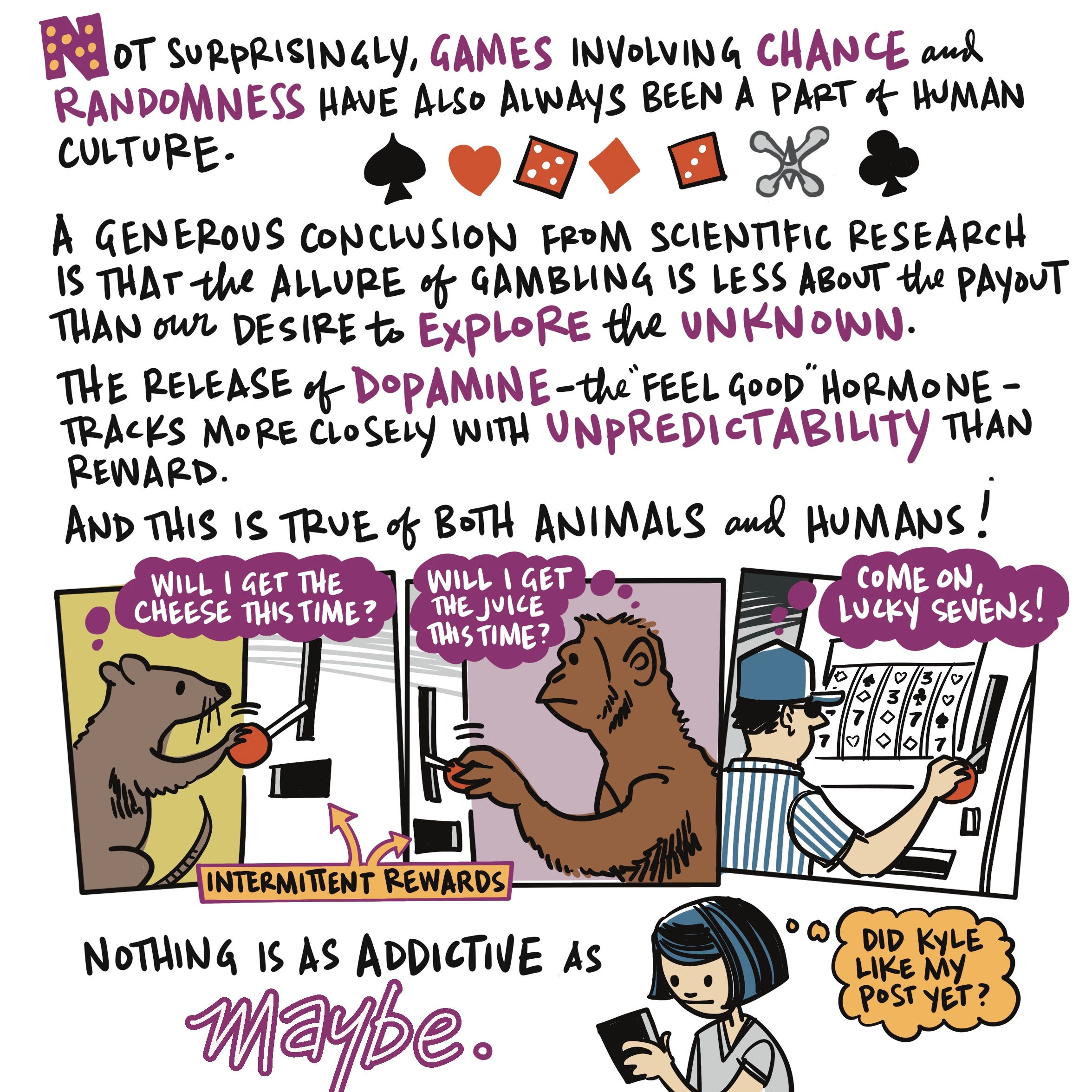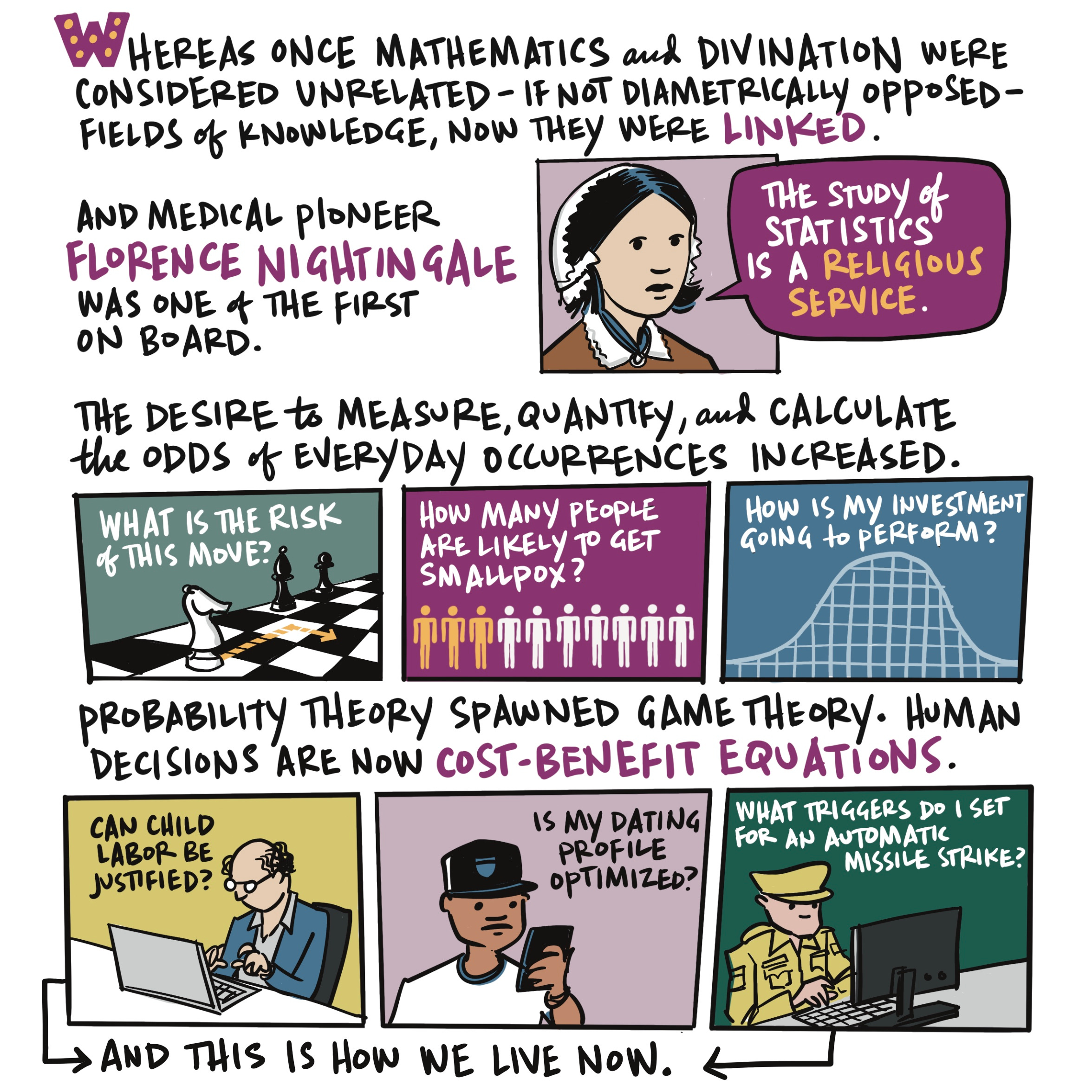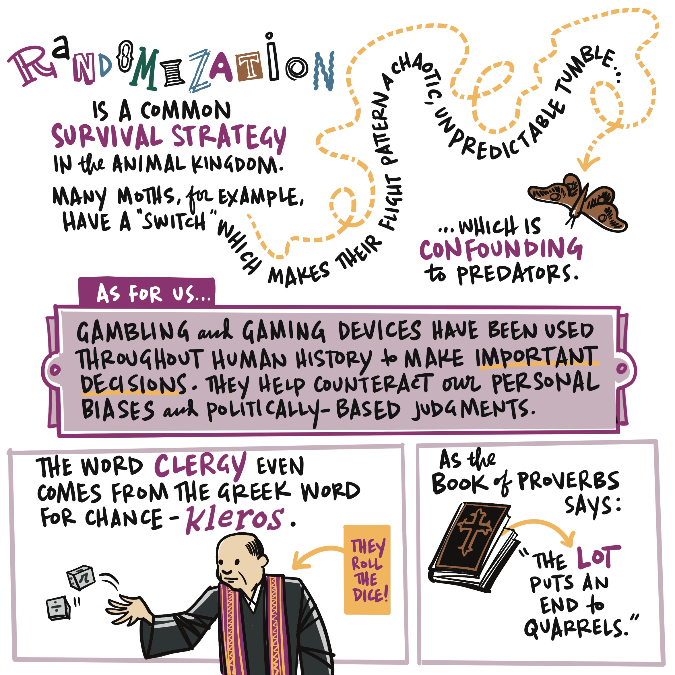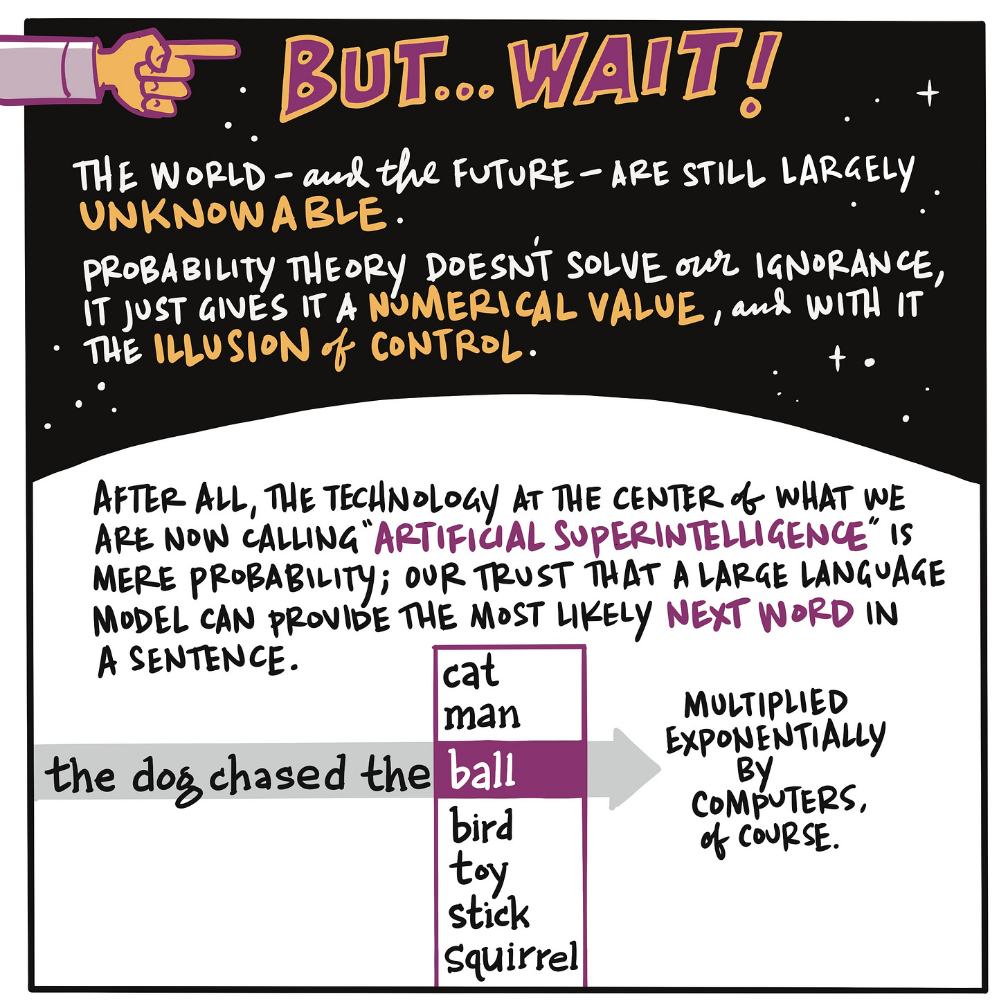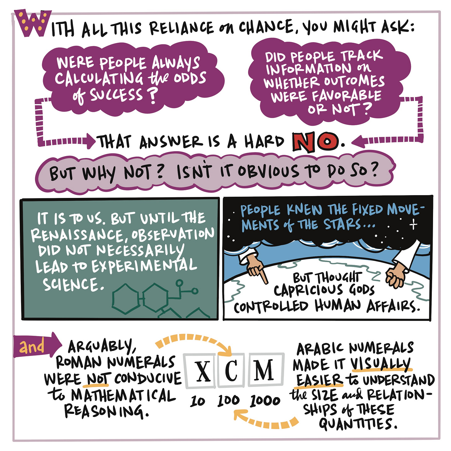 I read Kelly Clancy’s book Playing With Reality: How Games Have Shaped Our World this summer and I was fully absorbed by it. It’s a fast-moving, engaging and wide-ranging exploration of game theory that weaves a path through chess, Go, and SimCity, but also eBay, military strategy, biological evolution (a lot of it is admittedly over my head), urban planning, economics, and yes, AI. There are a lot of ideas in this book. I have chosen to illustrate only a single chapter, Chapter Three: Dice Playing God.
